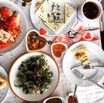 Kahvaltida seçenekler çok ve içeceklerde çay, kahve ve meşrubatlar arasında seçim mevcuttur. Sigara içenler terasa çıkıp manzarayla birlikte sigarasını içebilir.
