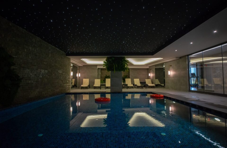 Konuklar kapalı havuzda yüzebilir, bahçede dinlenebilir veya yürüyüşe çıkabilir.