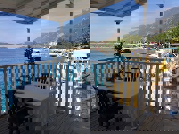 Her şey dahil otelde çok kalmayalım sıkılırız diyip balayımızın bir kısmında Kaş'a geçmeye karar verdik. Çok da araştırmadan bu oteli tercih ettik. Memnun kaldık. Kaldığımız odanın manzarası şahaneydi. Sabahları tur teknelerinin peş peşe gidişini izledim. Akşamları aynı şekilde dönüşlerini gördüm. Güzel bir manzaraydı, deniz ayaklarımızın altındaydı resmen. Eşimle sürekli, akşam balkonda oturup manzaraya karşı bir şeyler içelim dedik ama günün yorgunluğundan hiç yapamadık. 😄