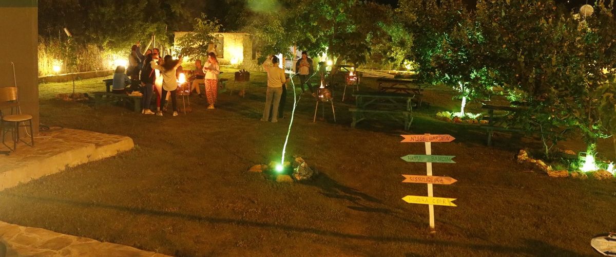 Eşimle Google'dan görerek kamp için gittik. Şansımıza gittiğimiz gece öyle bir yağmur başladı ki öğlene kadar sürdü neredeyse. Sabah bizi odaya aldılar ıslanmamamız için. Gerçekten Doğan abi de Gökhan abi de çok ilgilerdi. Biz hafta içi gittiğimiz için kamp yapan kimseyle karşılaşmadık ama gördüğümüz kadarıyla kamp alanı gayet geniş. Dış alanda prizler var kullanabileceğiniz. Duş ve tuvaletler de gayet temizdi. Alan güzel kullanılmış pek çok meyve ağacı var çadır koyabileceğiniz. Çocuklar için ve yetişkinler için iki ayrı havuz var. Havuzu kullanmak kampçılar için ücretli. Kahvaltı da indirimli oluyor orada etmek isterseniz. Biz akşam yemeği için merkeze indik ama mutfaktan gelen kokular güzeldi. Mutfaktaki abla da çok tatlı biri. Şirinceden şarap alıp geldik bardaklarımızı Doğan abi verdi. Her anlamda çok düşünceli ve yardımsever insanlar. Yağmur yağdığı gün Gökhan abi yavru kedi görüp dayanamayıp otele getirmiş :) Bir de baktıkları bir köpek var. Kesinlikle söz dinliyor ve sizi rahatsız etmiyor. Severseniz de kendini yerlere atıp mutlu oluyor.